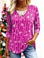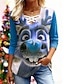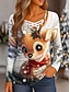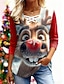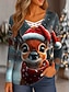 Weihnachten Damen T Shirt Grafik Rentier Hässliche Weihnachten Vintage Niedlich Stilvoll Langarm V Ausschnitt Normale Oberteile Täglich Druck Rosa Rote Blau Grün Herbst Winter