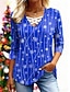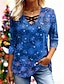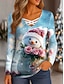 Weihnachten Damen T Shirt Grafik Rentier Hässliche Weihnachten Vintage Niedlich Stilvoll Langarm V Ausschnitt Normale Oberteile Täglich Druck Weiß Rote Blau Herbst Winter
