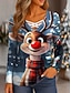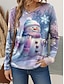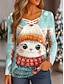 Weihnachten Damen T Shirt Grafik Schneemann Hässliche Weihnachten Vintage Stilvoll Klassisch Langarm V Ausschnitt Normale Oberteile Täglich Druck Blau Grün Herbst Winter