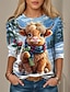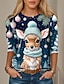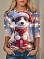 Weihnachten Damen T Shirt Grafik Tiermotiv Hässliche Weihnachten Vintage Mode Niedlich Langarm Rundhalsausschnitt Normale Oberteile Täglich Wochenende Druck Marineblau Blau Purpur Herbst Winter