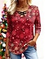 Weihnachten Damen T Shirt Grafik Schneeflocke Hässliche Weihnachten Vintage Stilvoll Klassisch Langarm V Ausschnitt Normale Oberteile Täglich Druck Rote Blau Purpur Grün Herbst Winter