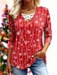 Weihnachten Damen T Shirt Grafik Hässliche Weihnachten Vintage Stilvoll Klassisch Langarm V Ausschnitt Normale Oberteile Täglich Quastenkrawatte Druck Schwarz Rote Herbst Winter