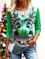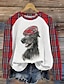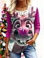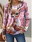 Weihnachten Damen T Shirt Grafik Tiermotiv Hässliche Weihnachten Vintage Mode Niedlich Langarm Rundhalsausschnitt Normale Oberteile Täglich Wochenende Druck Rosa Purpur Grün Frühling Herbst Winter