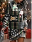 Weihnachten Damen Knielanges Kleid Minikleid Pulloverkleid Shiftkleid Urlaub Lässig Geburtstag Date Normale Passform Grafik Hässliche Weihnachten Langarm Rundhalsausschnitt Schwarz Frühling Herbst