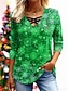 Weihnachten Damen T Shirt Grafik Schneeflocke Hässliche Weihnachten Vintage Stilvoll Klassisch Langarm V Ausschnitt Normale Oberteile Täglich Druck Gelb Rote Blau Purpur Grün Herbst Winter