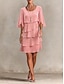 Damen Minikleid Freizeitkleid Chiffonkleid Stufenkleid Elegant Mode Modern Outdoor Urlaub Ausgehen Lässiger Schnitt Einfach Halbarm Rundhalsausschnitt Rosa Rote Khaki Sommer Frühling