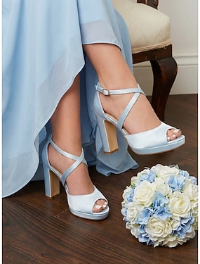 Elfenbeinfarbene Satin-Plateau-Sandalen mit Blockabsatz für Damen, elegante Brautschuhe mit Knöchelriemen für kirchliche Hochzeiten