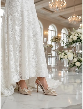 Elegante Brautschuhe aus Satin mit Kristallschleife – Slingback-Hochzeitsschuhe für klassische Ballsaal- und intime Zeremonien