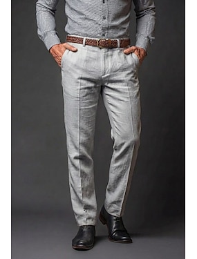 Herren Baumwolle Leinen Anzughose Freizeithose Täglich Geschäft Geschäftlich Leicht Formell Weiß Hell Gray Dunkelgrau Frühling & Sommer Hosen Einfarbig Figurbetonter Schnitt Lang Unelastisch