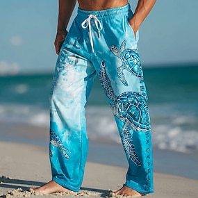 Herren Schildkröten Meeresbewohner Hose Freizeithose Baggy-Hosen Mittlere Taille Hawaiianisch Outdoor Urlaub Strandbekleidung Elastischer Kordelzug in der Taille Leinenähnliche Hose mit Taschen