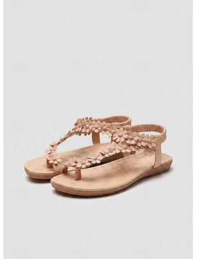 T-Riemchen-Sandalen für Damen mit Blumenverzierung und gepolsterter Sohle – perfekt für lässige Sommerausflüge