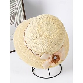 Faltbarer Damen-Sonnenhut aus Stroh im Boho-Stil – leichte, atmungsaktive Strandkappe aus Polyester mit Blumenschleife, in verschiedenen Farben erhältlich, ideal für Sommerurlaub, Freizeit und Reisen.