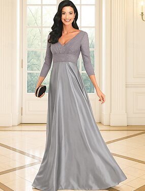 A-Linie bodenlanges Hochzeitsgastkleid Formelle Kleider Abendgala Brautmutterkleid 3/4-Länge Ärmel Rundhalsausschnitt Elegant Formal Spitze in einfarbig