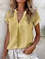 Damen Hemd Baumwoll-Leinen-Hemden Knopfleiste Bluse Einfarbig Basic Lässig Kurzarm V Ausschnitt Normale Oberteile Täglich Tasche Schwarz Rosa Blau Orange Hellgrau Sommer Frühling