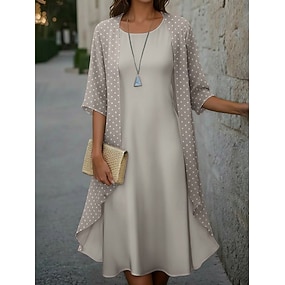 Damen Midikleid Freizeitkleid Kleid-Set Elegant Mode Modern Outdoor Urlaub Ausgehen Normale Passform Tupfen Dreiviertelarm Rundhalsausschnitt Rosa Purpur Braun Grün Sommer Frühling Herbst