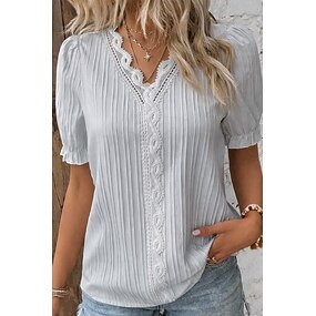 Damen T Shirt T-Shirt Spitze Patchwork Einfach Mode Stilvoll Klassisch Kurzarm V Ausschnitt Normale Oberteile Täglich Ausgehen Wochenende Schwarz Weiß Gelb Himmelblau Purpur Sommer Frühling