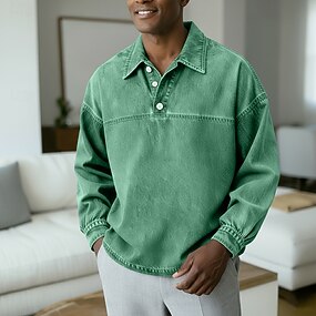 Herren Polo Lässig Urlaub Klassisch Langarm Mode Basic Einfarbig Einfach Vintage-Stil Gewaschen Frühling Winter Frühling & Herbst Normale Passform Schwarz Hellgrün Rosa Marineblau Dunkelgrün Purpur