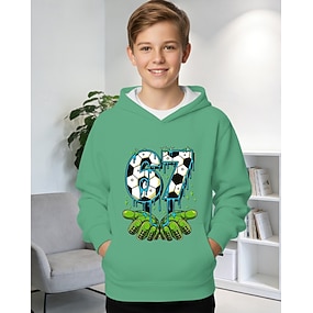 Jungen 3D Grafik Fußball Lustiger Slang 67 Kapuzensweatshirt Pullover Langarm 3D-Druck Frühling Herbst Sport Mode Streetwear Kinder 4-12 Jahre Mit Kapuze Outdoor Lässig Täglich Normale Passform