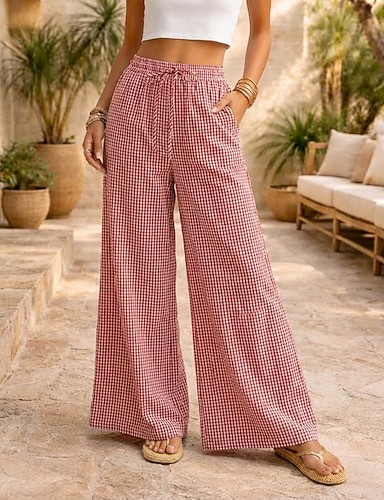 Damen Weites Bein Chinos Urlaub Streetwear Lässig Volle Länge Mittlere Taillenlinie Einfach Kordelzug Tasche Elastischer Bund Bequem Komfort Atmungsaktiv Mikroelastisch Täglich Outdoor Streetwear