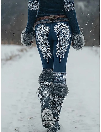 Damen Leggings Vintage Mode Streetwear Volle Länge Hohe TaillePantsWeihnachten Grafik Karomuster Abstrakt Drucken Thermowarm Weich Atmungsaktiv Dehnbar Täglich Outdoor Urlaub Dunkelgrau Schwarz