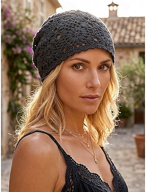 Boho-Mütze mit Blumenmuster, gehäkelt, aus Baumwollmischgewebe, in verschiedenen Farben, für lässigen Alltag, Reisen, Urlaub und Strandurlaub.