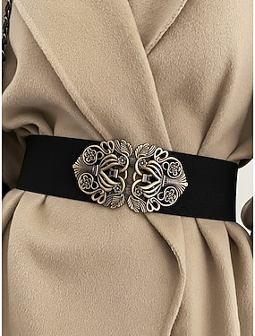 Elastischer Vintage-Hüftgürtel für Damen mit bronzefarbener Spiralschnalle – Kunstledergürtel für Kleider und Blusen, eleganter Stil für den Alltag und formelle Anlässe