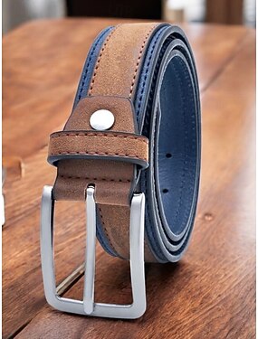 Zweifarbiger Kunstledergürtel für Herren | Stilvolles braun-blaues Design mit Metallschnalle für Freizeit- und Abendgarderobe