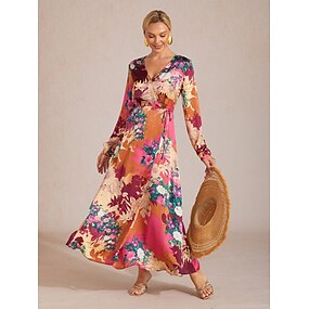 Damen Midikleid Satinkleid Partykleid Cocktailkleid Elegant Mode Modern Abendgesellschaft Party Normale Passform Einfach Langarm V Ausschnitt Rosa Armeegrün Dunkelgrün Braun Sommer Herbst Winter