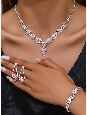 Damen-Schmuckset mit rosa Kristallen – funkelnde Halskette, Armband und Ohrringe mit Strass-Akzenten für elegante Party- und Abendgarderobe