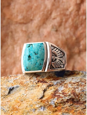 Herrenring im Bohème-Stil aus einer Legierung und Türkis, ein ausdrucksstarker Vintage-Siegelring in verschiedenen Größen – perfekt für Strandurlaub, lässige Sommeroutfits und den Alltag.