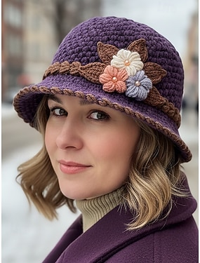 Strickmütze für Damen – weiches Wollmaterial, verschiedene Farben, 3D-Blumenverzierung, wärmendes Fleecefutter, perfekt für Weihnachten und winterliche Outdoor-Aktivitäten