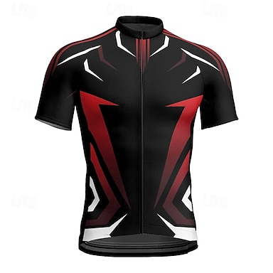 Herren Radtrikot Geometrisch Kurzarm Fahhrad T-Shirt Oberteil mit 3 Gesäßtaschen Mountainbike MTB Straßenradsport Schnelltrocknend Frontreißverschluss Feuchtigkeitsableitend Sport Rot Bekleidung