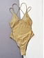 Damen Einteiler Badeanzug Raffung Monokini Slips Bauchkontrolle Hohe Taille Schlank Rückenfrei Urlaub Strandbekleidung Einfarbiger V-Ausschnitt Ärmelloses Badeanzüge