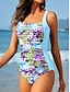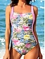 Damen Badeanzug Einteiler Monokini Slips Bademode Bauchkontrolle Hohe Taille Rückenfrei Urlaub Strandbekleidung Blumen Grafik U-Ausschnitt Ärmellos Badeanzüge