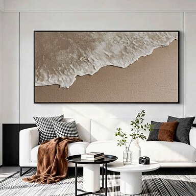Ölgemälde, handgemalt, abstrakt, strukturierte Strandmalerei, handgefertigt mit Meereswellen auf Leinwand, vertikal, extra groß, Kunst, Sandfarben, Acrylmalerei, natürliches 3D-Kunstwerk