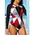 Damen Regulär Anti UV Shirt Einteiliger Surfanzug Badeanzug Geometrisch Streifen Geometrie Reißverschluss mit integriertem BH Herausnehmbare Polsterung UV-Sonnenschutz UPF50+ Ultraleicht (UL) Langarm