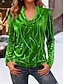 Damen T Shirt Druck Grafik Abstrakt Geometrie Elegant Vintage Stilvoll Langarm Hoher Ausschnitt Asymmetrischer Ausschnitt Normale Oberteile Täglich Dunkelgrün Frühling Herbst Winter