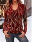Damen Tunika T-Shirt Druck Gestuft Grafik Geometrie Elegant Vintage Mode Langarm Wasserfallausschnitt Normale Oberteile Täglich Ausgehen Wochenende Wein Königsblau Purpur Gold Grün Herbst