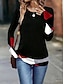 Damen T Shirt Druck Grafik Geometrisch Farbblock Vintage Stilvoll Klassisch Langarm Rundhalsausschnitt Normale Oberteile Täglich Wochenende Schwarz Herbst Winter