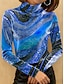 Damen T Shirt Grafik Geometrie Elegant Vintage Stilvoll Langarm Rollkragen Hoher Ausschnitt Normale Oberteile Ausgehen Blau Weiß Gelb Rote Herbst Winter