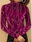 Damen T-Shirt Druck Gestuft Grafik Geometrie Elegant Vintage Mode Langarm Rollkragen Normale Oberteile Täglich Ausgehen Wochenende Wein Königsblau Purpur Grün Herbst