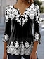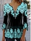 Damen Tunika T-Shirt Druck Gestuft Grafik Pflanzen Geometrie Elegant Vintage Mode Langarm Wasserfallausschnitt Normale Oberteile Täglich Ausgehen Wochenende Blau Purpur Orange Grün Herbst