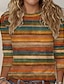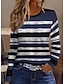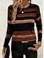 Damen T Shirt Druck Grafik Geometrisch Gestreift Vintage Mode Stilvoll Langarm Rundhalsausschnitt Normale Oberteile Täglich Blau Schwarz Rosa Leicht Braun Kaffee Sommer Frühling Herbst