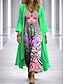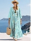 Damen Kleid-Set A Linie Kleid Urlaub Lässig Grafik Geometrie Druck Maxikleid Dreiviertelarm V Ausschnitt Strand Blau Rosa Purpur Sommer Frühling Lässiger Schnitt