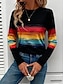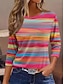 Damen T Shirt Druck Grafik Geometrisch Gestreift Vintage Mode Stilvoll Langarm Rundhalsausschnitt Normale Oberteile Täglich Blau Hellgrün Rosa Rote Marineblau Sommer Frühling