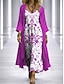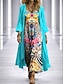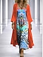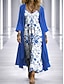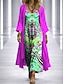 Damen Kleid-Set A Linie Kleid Elegant Urlaub Grafik Geometrie Geschichtet Druck Maxikleid Dreiviertelarm V Ausschnitt Täglich Party Blau Rote Purpur Sommer Frühling Lässiger Schnitt