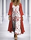 Damen Kleid-Set A Linie Kleid Elegant Urlaub Grafik Geometrie Geschichtet Druck Maxikleid Dreiviertelarm V Ausschnitt Täglich Party Blau Rote Purpur Sommer Frühling Normale Passform