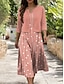Damen Kleid-Set A Linie Kleid Elegant Lässig Grafik Geometrie Geschichtet Druck Midikleid Halbarm V Ausschnitt Täglich Blau Rosa Purpur Sommer Frühling Normale Passform