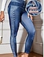 Damen Jeans Leggings Jeggings Urlaub Streetwear Basic Volle Länge Mittlere Taillenlinie Einfach Tasche Elastischer Bund Bequem Atmungsaktiv Mikroelastisch Täglich Outdoor Urlaub Blau Frühling Herbst
