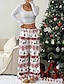 Weihnachtshose für Damen, gerade geschnitten, im Vintage-Ethno-Stil, lang, hochgeschnitten, mit auffälligem Elch-Weihnachtsbaum-Print, Kordelzug ohne Gummizug, für Outdoor-Aktivitäten wie Urlaub und